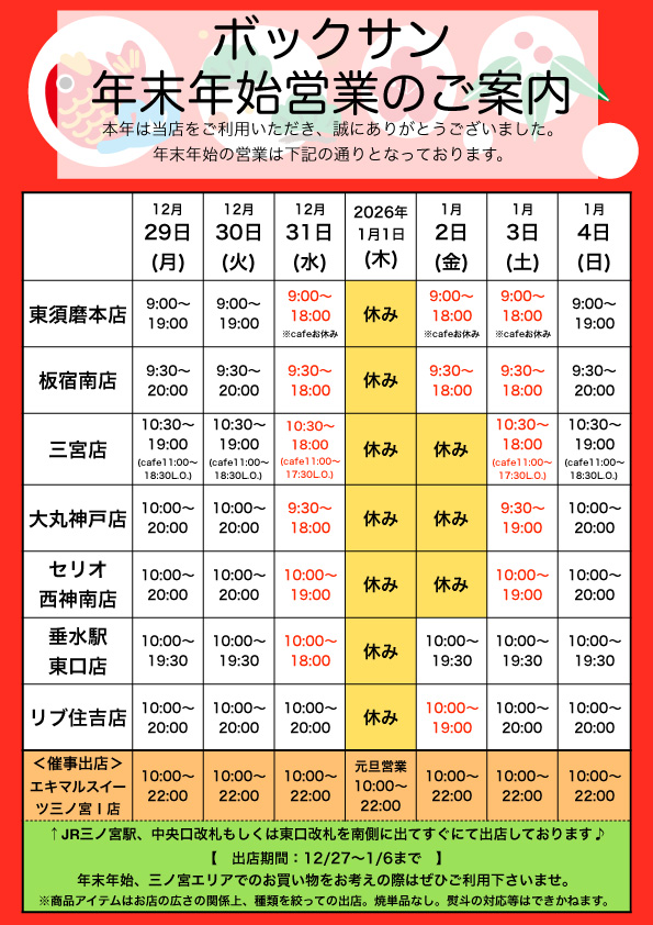 三ノ宮駅ご利用の際はぜひお立ち寄りくださいませ。