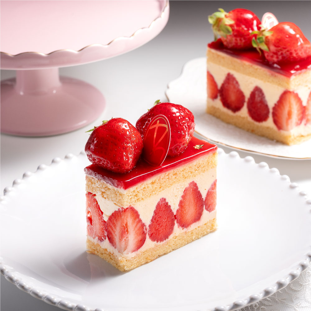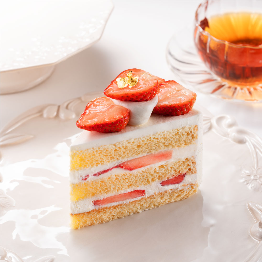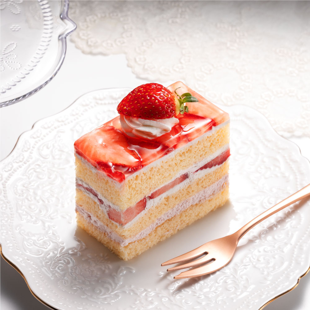 1層は旬の苺と生クリーム、もう1層はベリークリームをサンドし、たっぷりの苺を飾った香り豊かなショートケーキです。
