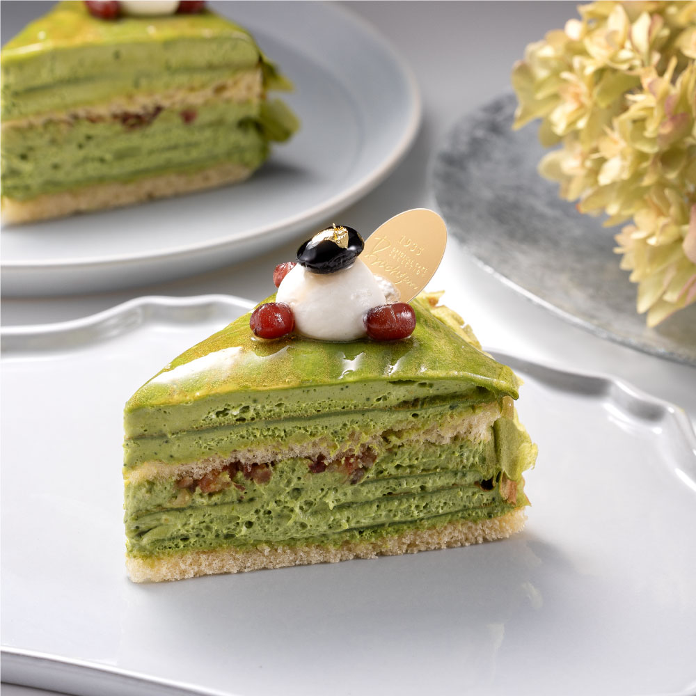 ※リブ住吉、東須磨本店、板宿南限定抹茶のクレープ、抹茶クリーム、刻んだ栗、スポンジを重ねた和風ミルクレープです。