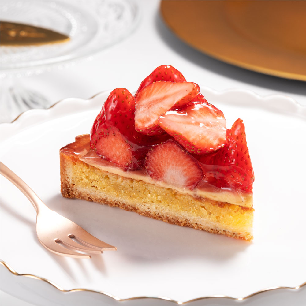 アーモンドクリームを絞って香ばしく焼き上げた当店自慢のタルトに、ディプロマットクリームをひき、苺をゴロゴロと乗せました。